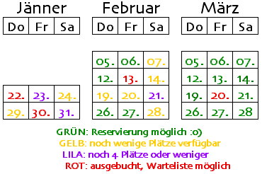 Die Platzeinteilung erfolgt nach Reihenfolge der Reservierungen unter größtmöglicher Berücksichtigung von Platzwünschen. Gruppen sitzen im KleinKunstCafé beieinander.